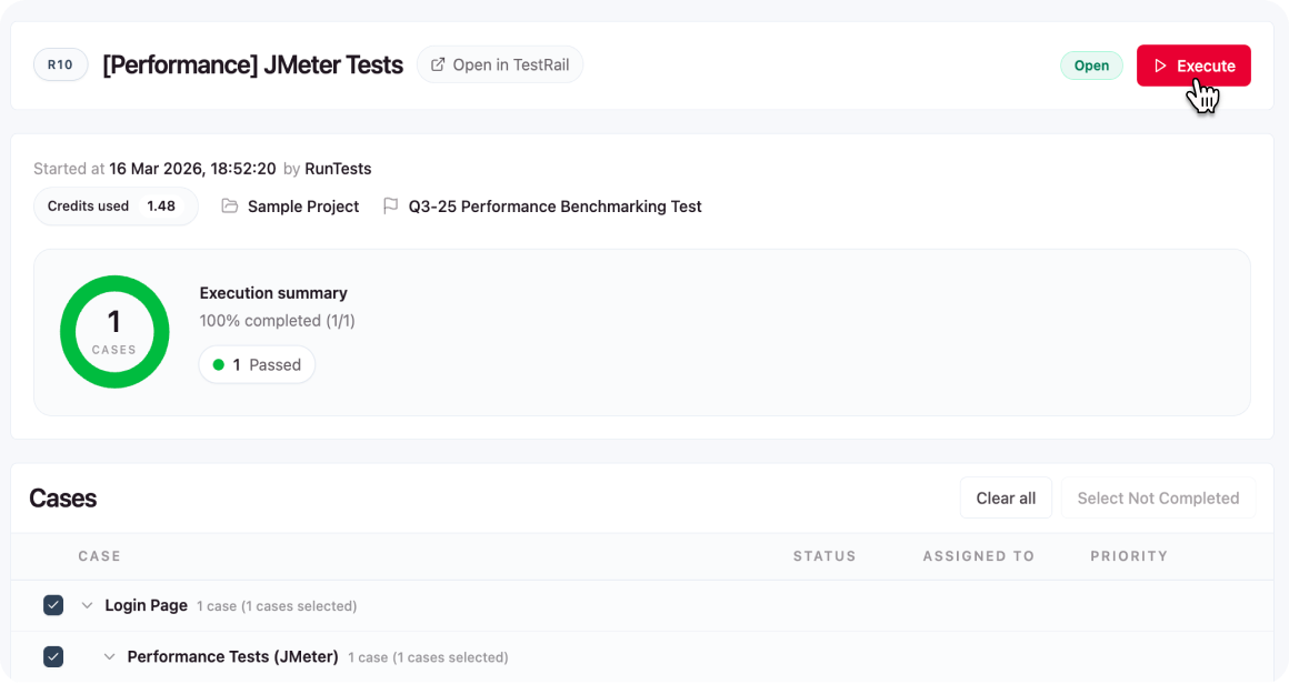 Just connect TestRail and press Execute